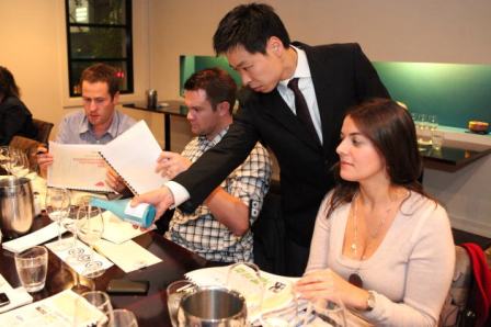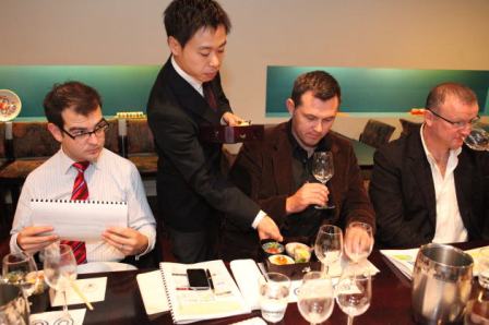 In the middle of the picture, Mr. Ben Edwards, President of Sommeliers Australia, is holding a wine glass. On the left is Mr. David Clarke, a sommelier of Vue de monde.