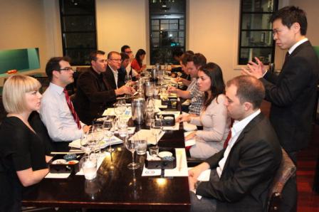 A “sake” tasting sponsored by Sommeliers Australia was held at “Hanabishi” restaurant, on Tuesday, May 4th,with Mr .Masahiko Iga, the distinguished Sake sommelier of the association, serving various kinds of “sake”. The number of participants was limited to 14.